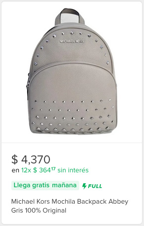En South Valley Boutique nos especializamos en ir a visitar las boutiques de Estados Unidos y traerte a México la mejor selección de productos. No podemos hablar en nombre de todas las tiendas online que venden productos Michael Kors, pero en nuestro outlet podrás encontrar backpacks 100% originales de Estados Unidos, por un precio que ronda los 4,500 – 5,000 MXN. Si por el contrario estás buscando una bolsa tote, más grande, en nuestro catálogo la puedes conseguir desde 4,300 MXN.