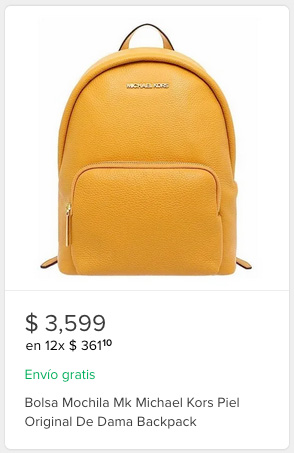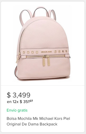 En Mercado Libre, una backpack como la que te indicamos arriba, la puedes encontrar en un promedio de entre 3,500 y 5,000 MXN, aunque realmente, aquellas que se acercan al rango más bajo de precios, corren el riesgo de ser clones, ya que ciertos vendedores ponen en la publicación la foto de la bolsa original, pero cuando realizas la compra te mandan la copia china. Esto no tiene por qué ser así siempre, ni en todos los productos económicos de Mercado Libre, pero sí te puede llegar a pasar.