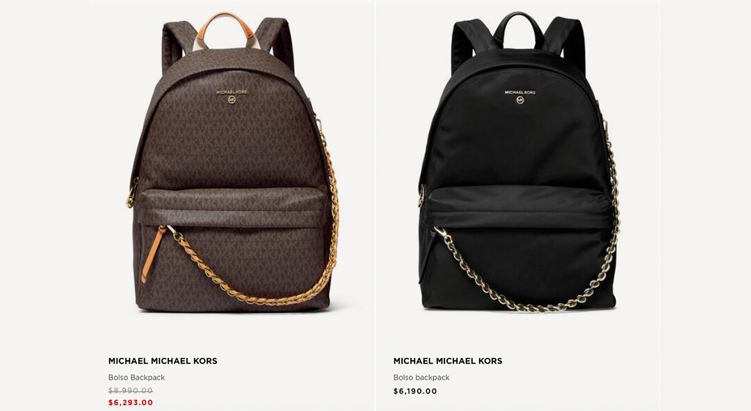 En South Valley Boutique nos especializamos en ir a visitar las boutiques de Estados Unidos y traerte a México la mejor selección de productos. No podemos hablar en nombre de todas las tiendas online que venden productos Michael Kors, pero en nuestro outlet podrás encontrar backpacks 100% originales de Estados Unidos, por un precio que ronda los 4,500 – 5,000 MXN. Si por el contrario estás buscando una bolsa tote, más grande, en nuestro catálogo la puedes conseguir desde 4,300 MXN.